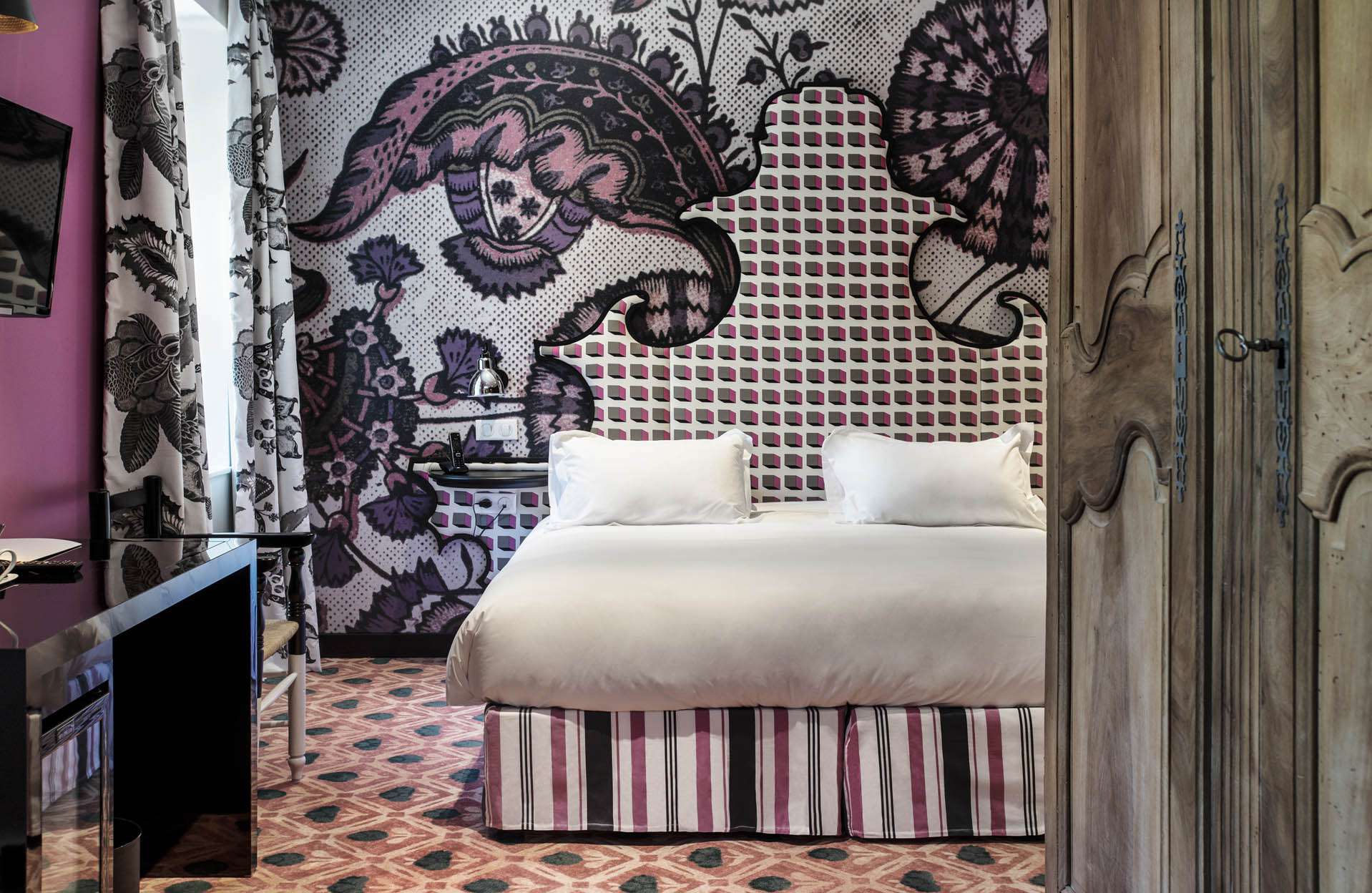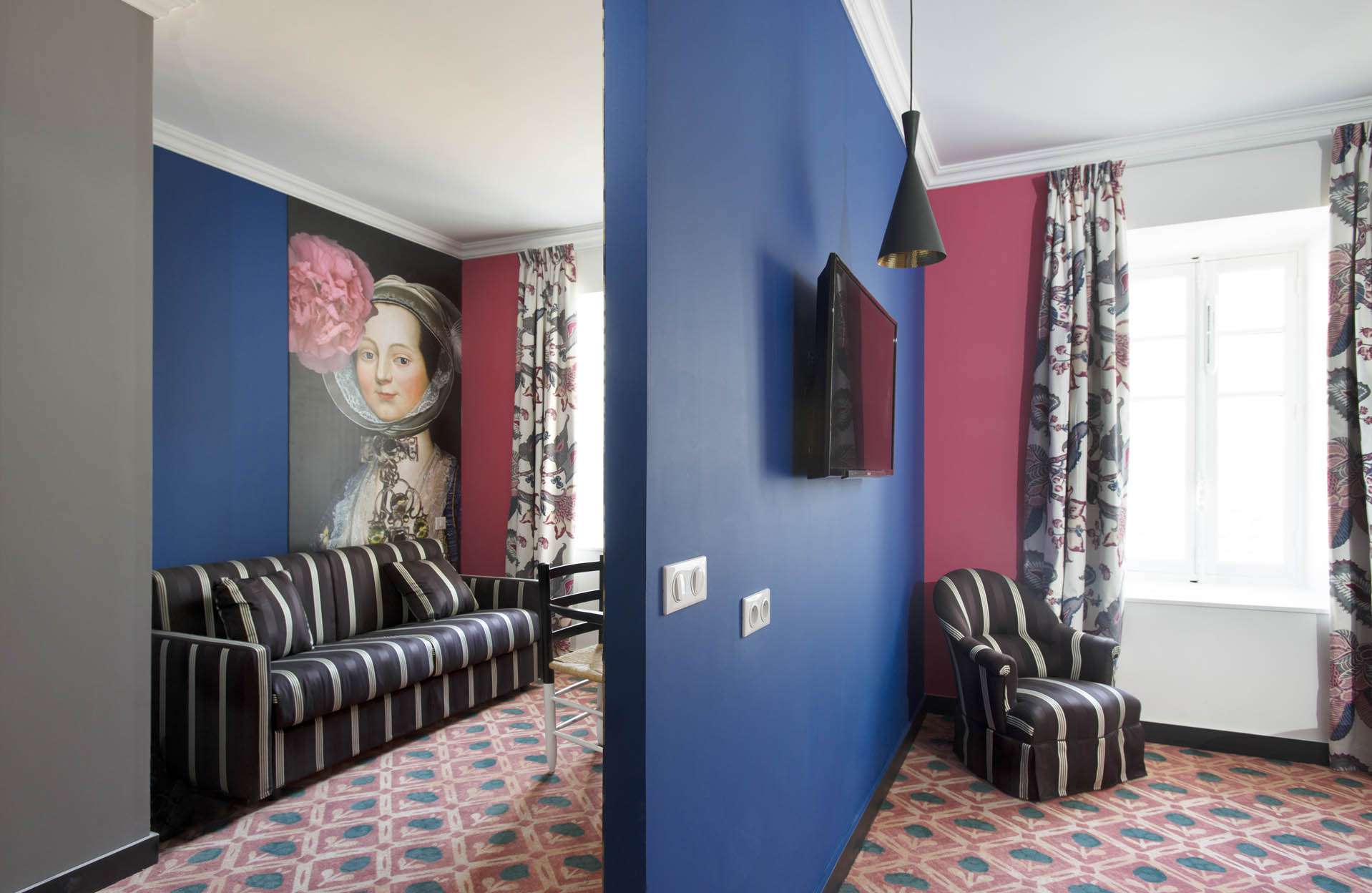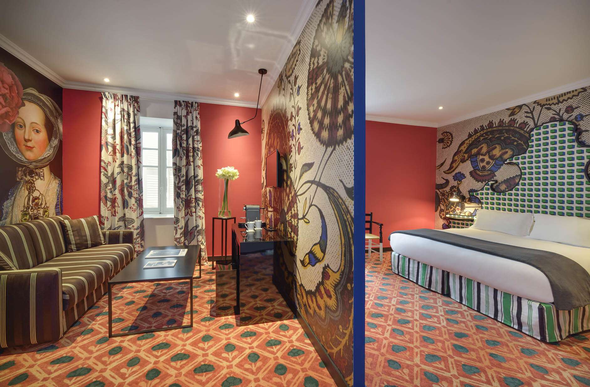 La Junior Suite Provençale ou Monacale offre une décoration personnalisée par Christian Lacroix. Confortable et spacieuse, elle dispose d’un grand lit double 160 cm ou 2 lits simples 90 cm et d’un salon avec sofa transformable en lit d’appoint. Possibilité d’ajouter un lit bébé.